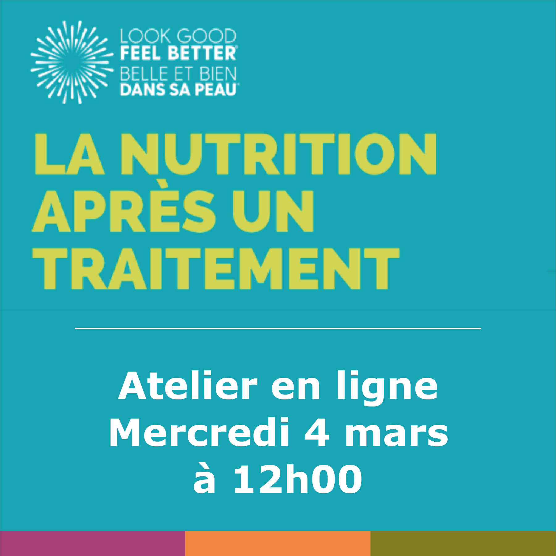 Créer des évènements et/ou ateliers animés, tels que des conférences et des ateliers touchant la santé physique et moral, pour supporter et maximiser les outils pour une meilleure qualité de vie aux gens atteints de la maladie, leur entourage et un plus large public.