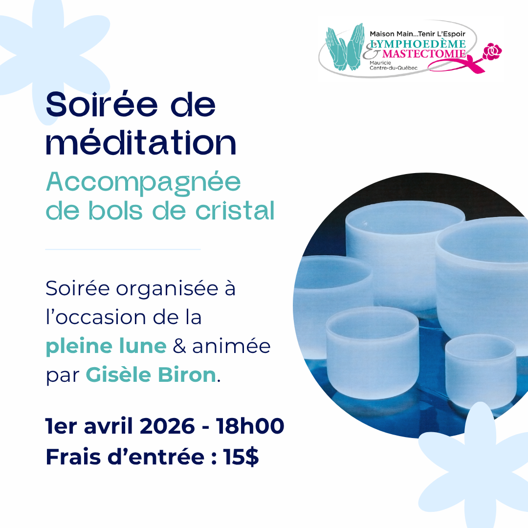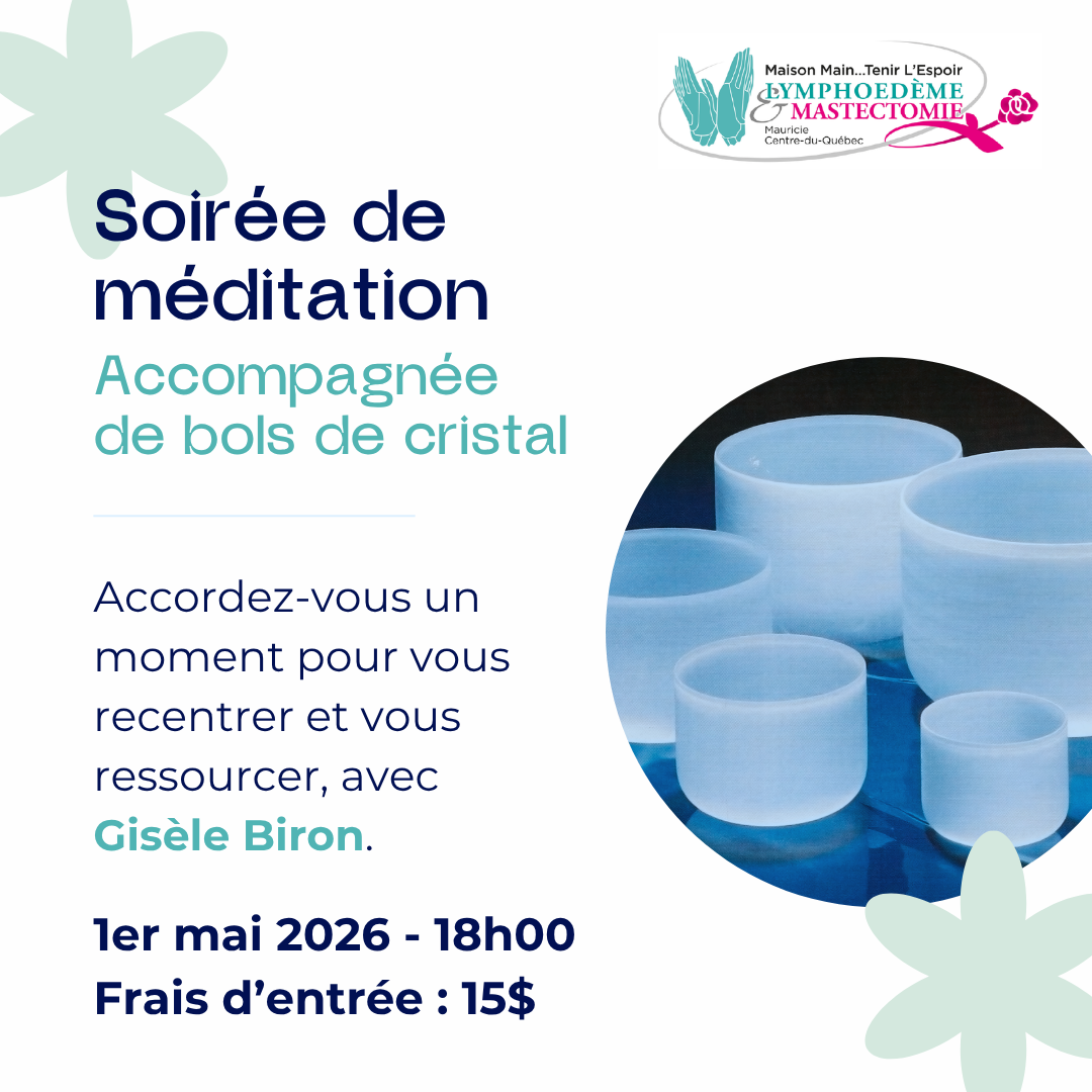 Prévenir, éduquer et soutenir les personnes atteintes de lymphœdème ou qui ont un niveau de risque d’en être atteint à long terme, ainsi que leurs proches, sur le territoire de la Mauricie et du Centre-du-Québec, afin d’améliorer leur qualité de vie.