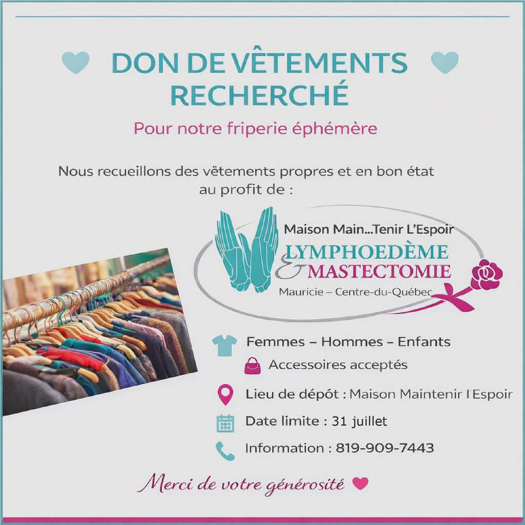 Solidifier et agrandir nos services d’aide à l’accompagnement aux personnes souffrants de lymphœdème et notre impact auprès de la population, du réseau de la santé, ainsi que les décideurs sur les diverses causes de cette maladie, sur le territoire de la Mauricie et du Centre-du-Québec, pour mieux prévenir, faciliter le dépistage, le traitement et en réduire la prévalence.